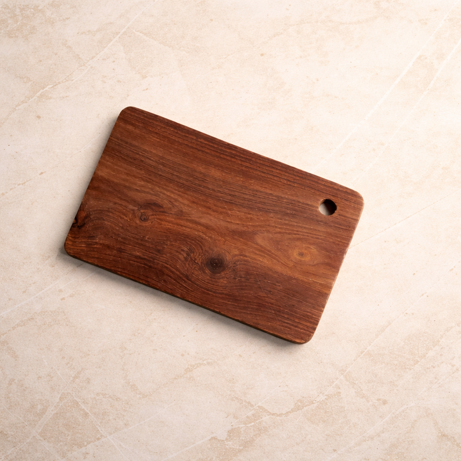 Designed for durability and everyday kitchen use, this Sheesham wood chopping board offers a sturdy and hygienic surface for food preparation. Its dense wood structure is gentle on knives while ensuring long-lasting performance. Easy to handle and naturally beautiful, it also doubles as a serving board for breads or snacks. A kitchen essential that balances functionality, craftsmanship, and natural elegance.